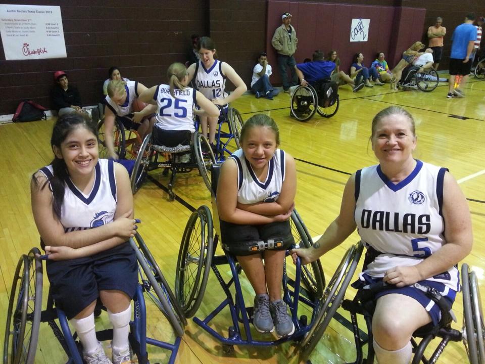 Two of my winning athletes and I getting ready to play together In A women's division wheelchair basketball game.